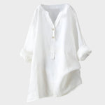 Ova oversize košulja savršena je za sve koji žele opušten, a istovremeno elegantan izgled. Široki kroj pruža maksimalnu udobnost, dok elegantni gumbi i diskretan V-izrez dodaju profinjen dodir. Lagano asimetričan rub čini je modernom i laskavom. Odlično se kombinira s trapericama, tajicama ili suknjama – pristaje uz sve.