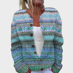 Naš kardigan kombinira zabavan uzorak s ležernim krojem – savršen za one koji žele unijeti udobnost i boju u svoj ormar tijekom sunčanih jesenskih dana. Ovaj model je jedan od najprodavanijih, nudeći stil i udobnost u neodoljivom paketu.