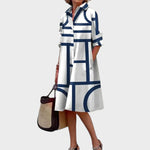 Geometrijska košulja-haljina za moderan i sofisticiran izgled