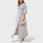 Ova maxi haljina odiše profinjenošću i jednostavnošću, pružajući elegantan izgled za svaku priliku. Sa ženstvenim krojem i detaljima koji laskaju figuri, savršen je izbor za dnevne i večernje kombinacije. Udobna i moderna, ističe prirodnu ljepotu uz dašak sofisticiranosti.