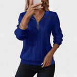 Otkrijte dugi rukav zamišljen da vam pruži toplinu, udobnost i laskavu siluetu u jednom. Mekana tekstura pletene tkanine i elegantna polu-zatvarač detalj stvaraju pažljiv izgled, dok ležeran kroj nježno pada na trbuh i ruke, pružajući učinak mršavljenja bez dodatnog volumena.