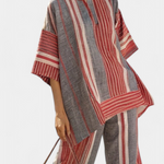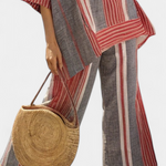 Mediteranski stil s opuštenim duhom. Kombinezon Daisy kombinira prugaste crvene koraljne tonove sa sivim tonovima u širokoj i tekućoj silueti koja podsjeća na ljeto i autentičnost.