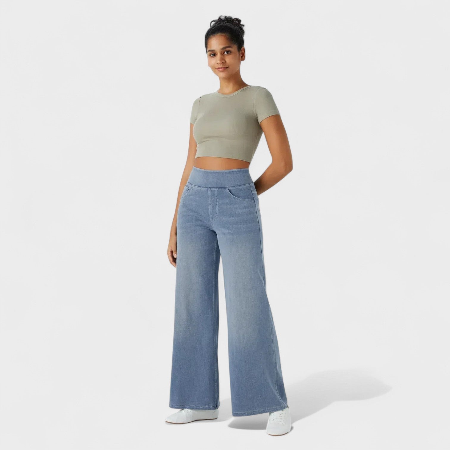 Otkrijte savršenu ravnotežu između udobnosti i elegancije s hlačama od traperica Clara. Njihov dizajn širokih nogavica izdužuje siluetu bez žrtvovanja udobnosti, idealno za aktivne žene koje žele izgledati dobro svaki dan.