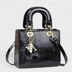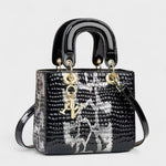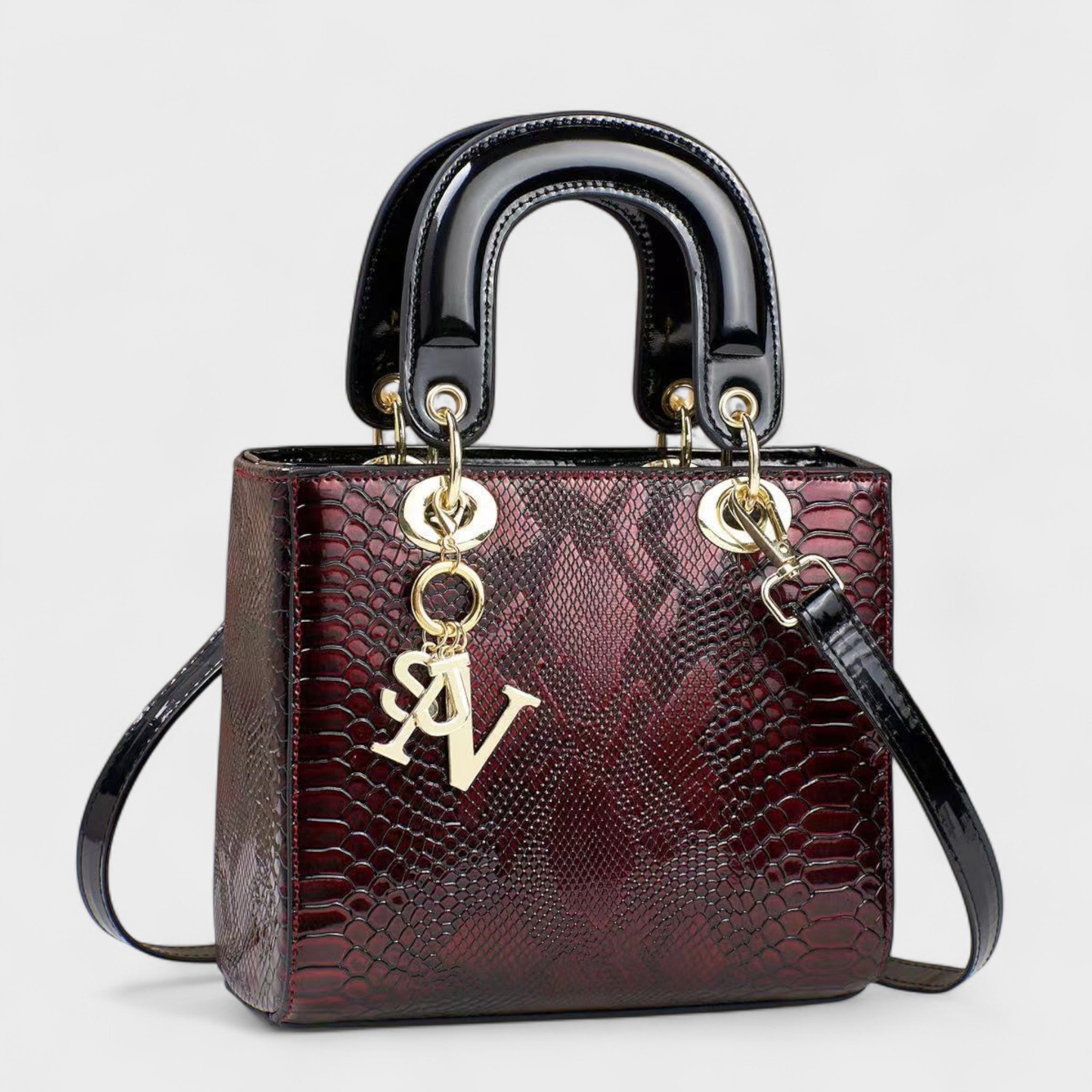 Sa sofisticiranim završetkom u životinjskoj teksturi i metalnim dijelovima visokog sjaja, ova torba je definicija profinjenosti. Strukturirana, s dvostrukim ručkama i dugom uklonjivom trakom, nudi svestranost koja odgovara od formalnih događaja do ležernih trenutaka sa stilom. Aksesor koji trenutno podiže svaku kombinaciju, donoseći šarm i autoritet.